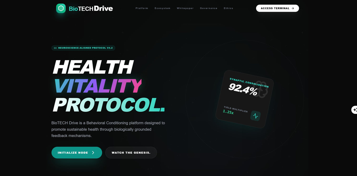 BioTECH Drive is a sustainable health and wellness platform that leverages biological and behavioral feedback mechanisms to enhance overall vitality..